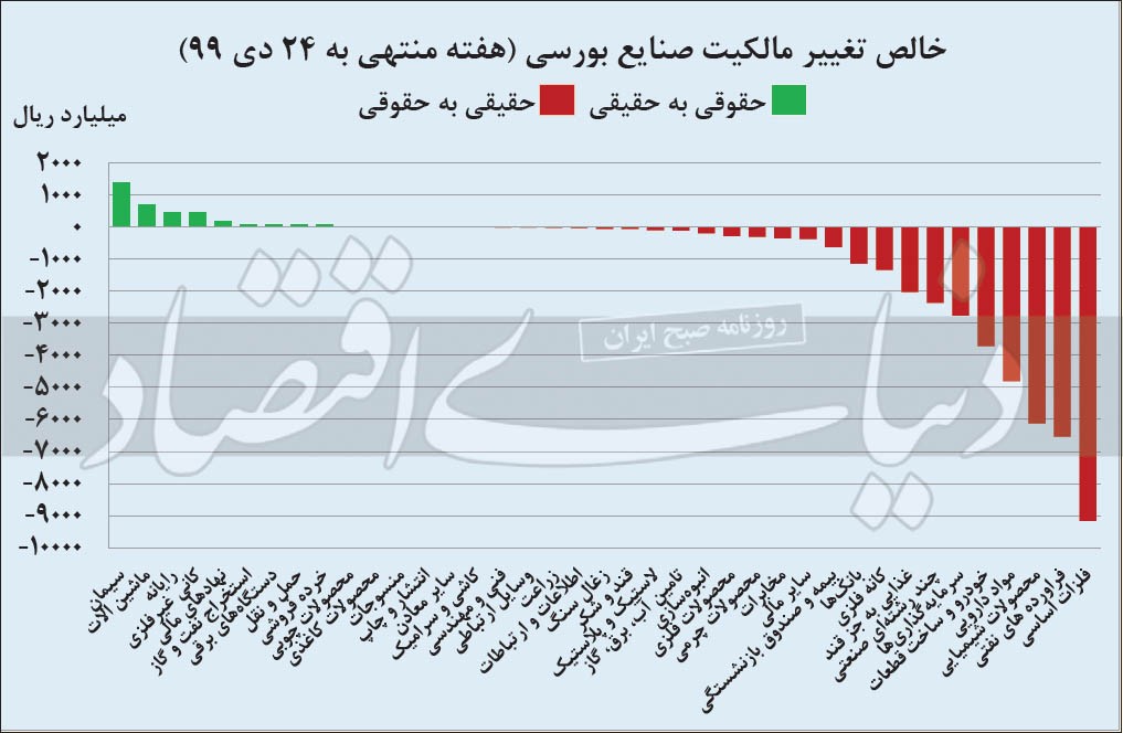 در این راستا طی هفتهای که گذشت شاهد جابهجایی سهامی به ارزش ۴ هزار و ۲۰۳ میلیارد تومان در مسیر حقیقی به حقوقی بودیم. این سومین هفته پیاپی بود که سهامداران خرد در سمت فروش بازار مشغول به فعالیت بودند.