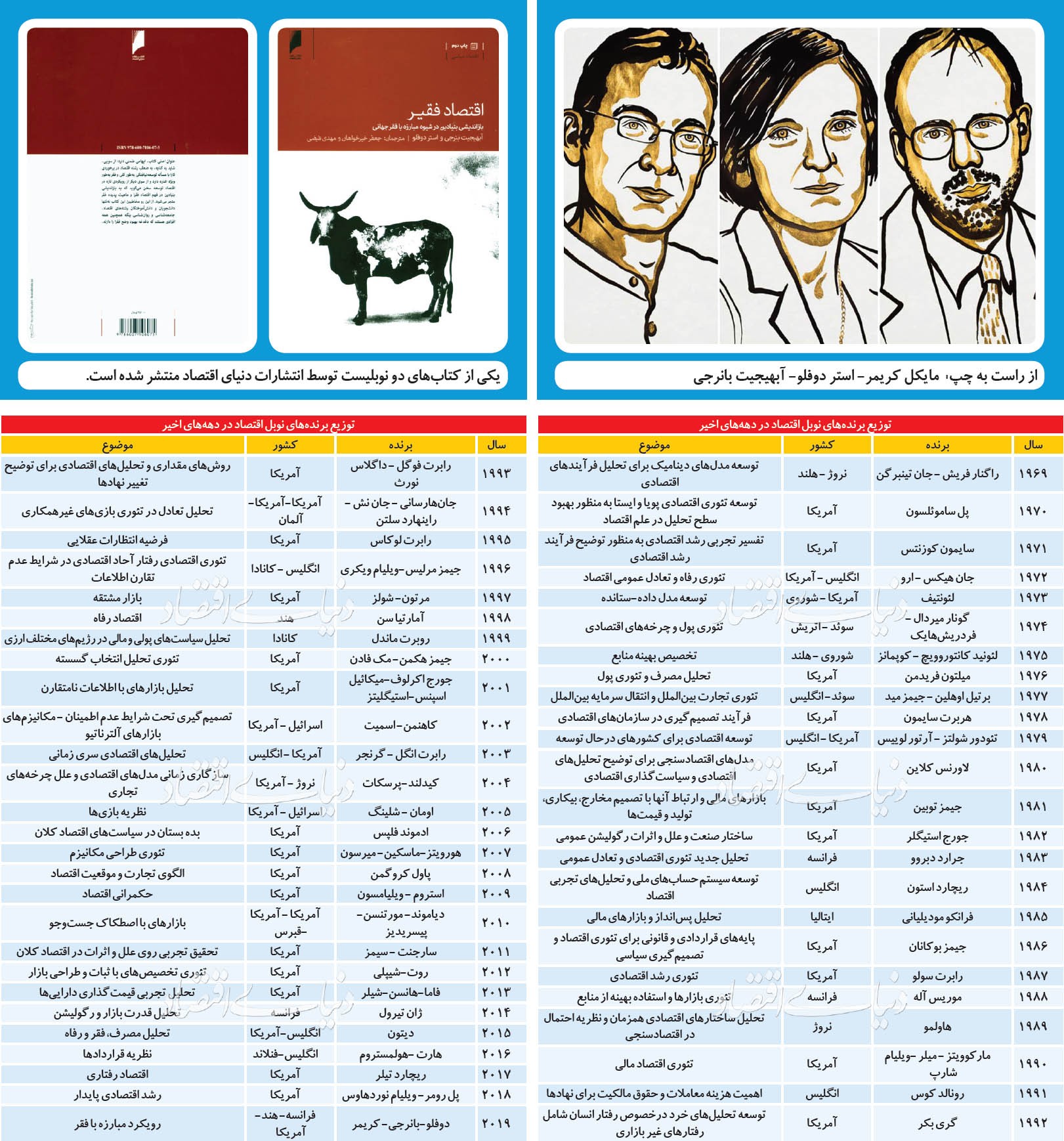 دنیای اقتصاد: آکادمی سلطنتی علوم سوئد جایزه نوبل اقتصاد سال ۲۰۱۹ را به آبهیجیت بانرجی و استر دوفلو از موسسه فناوری ماساچوست (MIT) و مایکل کریمر از دانشگاه هاروارد برای تحقیق درباره «روش‌های تجربی برای کاهش فقر جهانی» اهدا کرد. مسلما جواب واحدی به مساله مبارزه با فقر وجود ندارد. آزمایش‌های طراحی شده توسط برندگان امسال جایزه نوبل اقتصاد نشان می‌دهد سپردن کارها به بخش دولتی یکی از دلایل تعمیق فقر در کشورهای فقیر است.