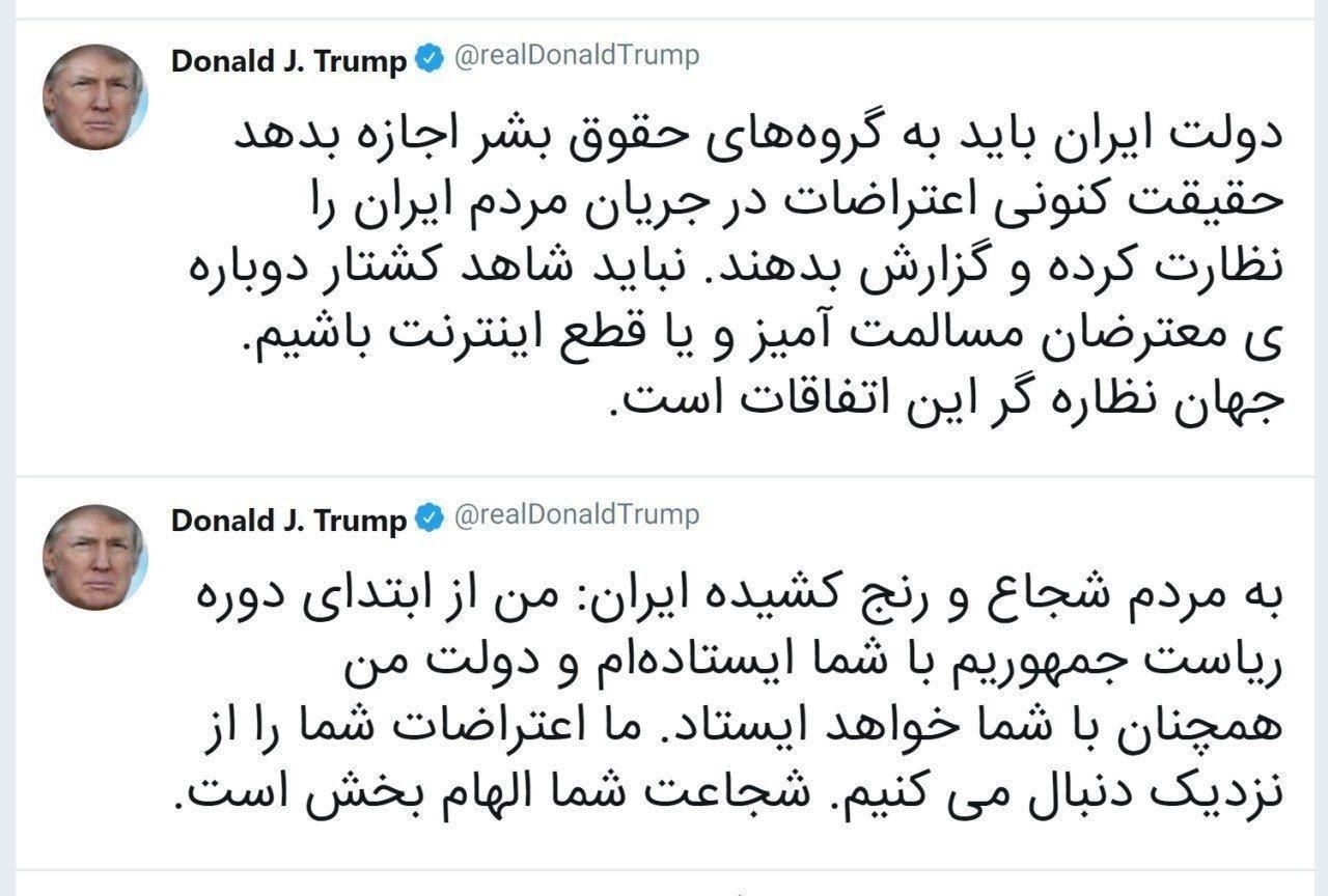 ترامپ با زبان فارسی هم ادعاهایش را تکرار کرد + تصویر