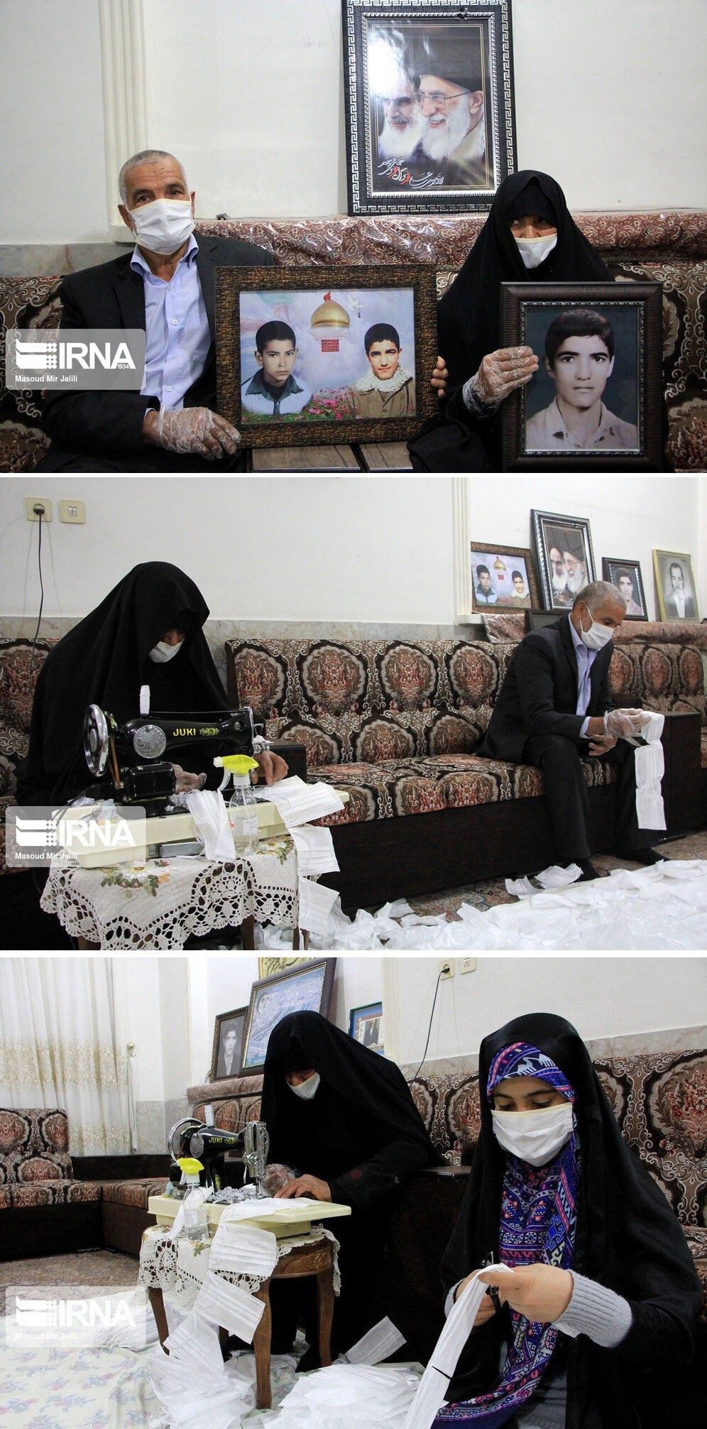 ایرنا نوشت: فاطمه فائزی مادر شهید محمدهادی غلامی نژاد (صالح نیا) و گروهی از بانوان یزد در منزل خود در حال تهیه و دوخت ماسک برای ارسال به مراکز درمانی هستند.