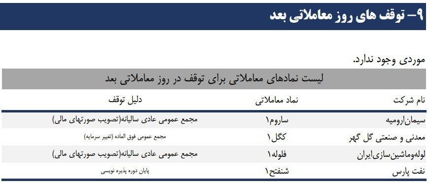 امروز 4 نماد معاملاتی در بازار متوقف میشوند.