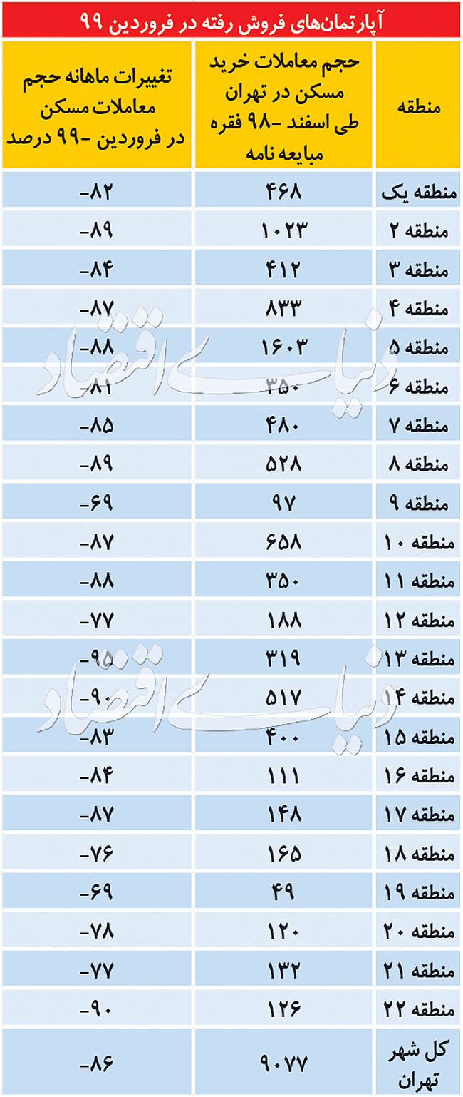 بررسی ها نشان میدهد در مناطق مصرفی نیمه شمالی شهر و مشخصا در مناطق پرمعامله دو، چهار و پنج دیوار مقاومتی در برابر کاهش قیمت وجود دارد. راز مقاومت تورم مسکن در شمال تهران ساختن این دیوار توسط خریداران و فروشندههاست. واقعیت این است که در فروردین ماه عمده خریداران بازار مسکن در این مناطق از جنس غیرمصرفی و سرمایهای بودهاند.