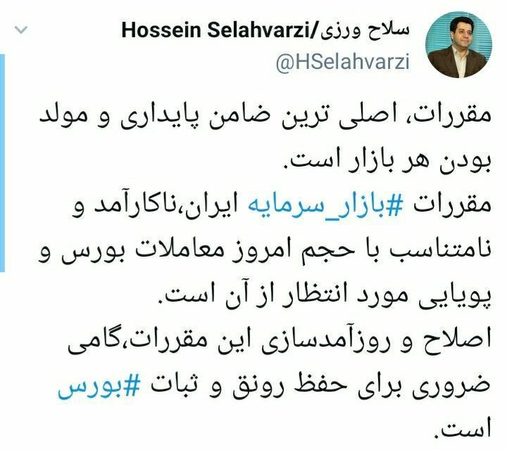 حسین سلاح ورزی، عضو شورای عالی بورس از اصلاح قانون و مقرراتی در بورس خبر داد که این روزها ناکارآمدند.