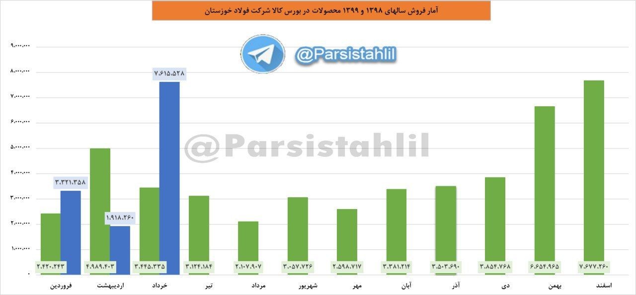 در 21 روز ابتدایی خرداد 1399، آمار معاملات فولاد خوزستان در رینگ صنعتی بورس کالا 762 میلیارد تومان بود.