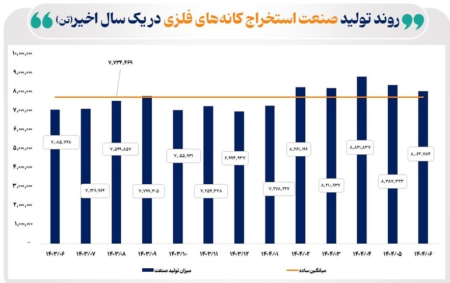 میزان تولید صنعت استخراج کانههای فلزی در سال ۱۴۰۳