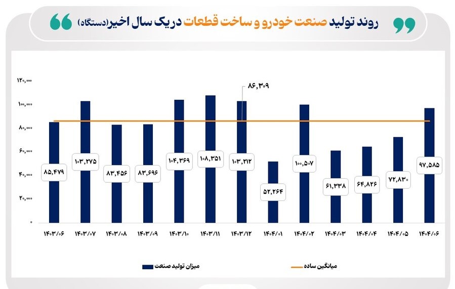افزون براین، در تابستان ۱۴۰۴ مقدار تولید صنعت خودرو نسبت به فصل قبل (بهار ۱۴۰۴) ۱۰ درصد افزایش داشته اما نسبت به فصل مشابه سال قبل (تابستان ۱۴۰۳) ۷ درصد کاهش داشته است.