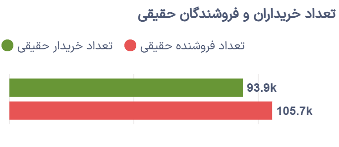همچنین حدود 94 هزار خریدار حقیقی در بازار سهام پورتفوی سرمایهگذاری خود را سنگین کردند؛ اما بالغ بر 106 هزار سرمایهگذار حقیقی فروشنده سهام بودند.