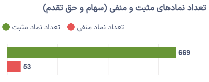 در این روز معاملاتی 669 سهم و حق تقدم مثبت بودند و 53 سهم و حق تقدم بهصورت منفی به کار خود پایان دادند.