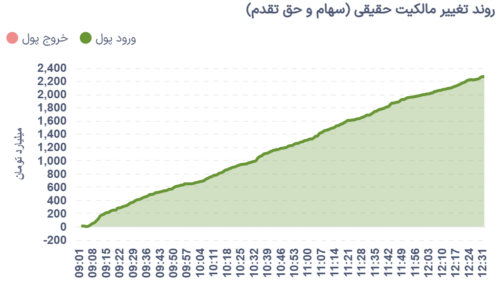 تغییرات مالکیت سهام و حق تقدم در بازار امروز، از ابتدای روز با روندی مثبت آغاز شد و تا پایان روز نیز روند مثبت ورود پول ادامه داشت.