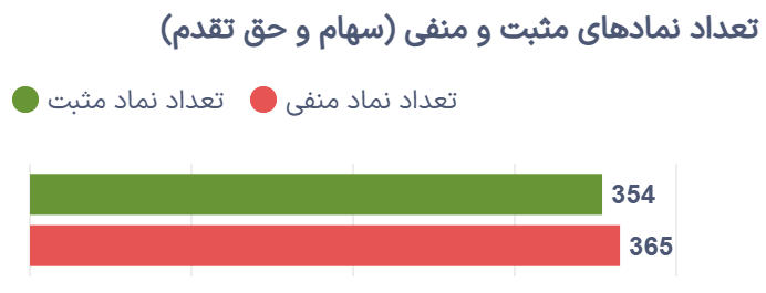 در این روز معاملاتی 354 سهم و حق تقدم مثبت بودند و 365 سهم و حق تقدم بهصورت منفی به کار خود پایان دادند.