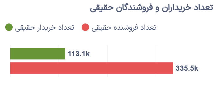 همچنین 113 هزار خریدار حقیقی در بازار سهام پورتفوی سرمایهگذاری خود را سنگین کردند؛ اما بالغ بر 335.5 هزار سرمایهگذار حقیقی فروشنده سهام بودند.
