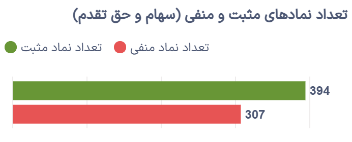 امروز 394 سهم و حق تقدم مثبت بودند و 307 سهم و حق تقدم بهصورت منفی به کار خود پایان دادند.