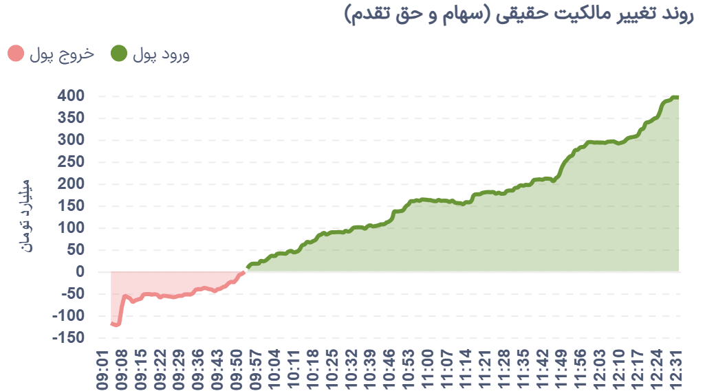 تغییرات مالکیت سهام و حق تقدم در بازار امروز با روندی منفی آغاز شد اما این روند منفی دیری نپایید و با ادامه روند مثبت، تا پایان روز ادامه داشت.