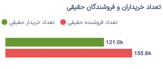 همچنین 121 هزار خریدار حقیقی در بازار سهام پورتفوی سرمایهگذاری خود را سنگین کردند؛ اما 155 هزار سرمایهگذار حقیقی فروشنده سهام بودند.