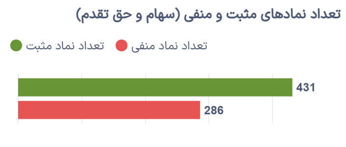 امروز 431 سهم و حق تقدم مثبت بودند و 286 سهم و حق تقدم بهصورت منفی به کار خود پایان دادند.