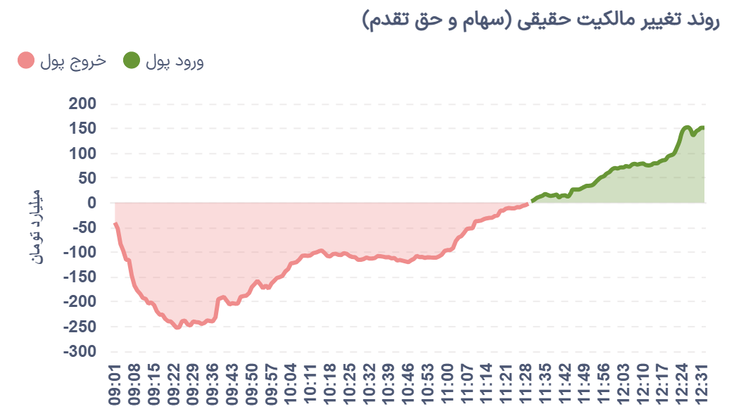 تغییرات مالکیت سهام و حق تقدم در بازار امروز با روندی منفی آغاز شد، اما در نهایت روند تغییر مالکیت حقیقی به صورت مثبت به کار خود پایان داد.