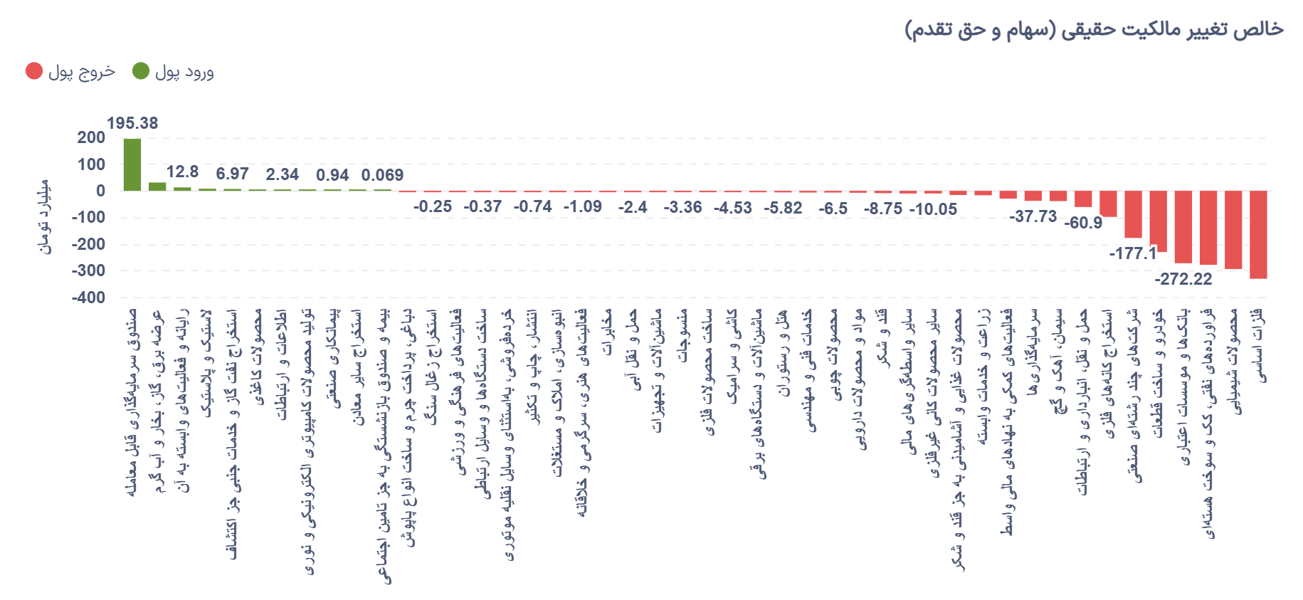 در میان صندوق ها نیز تحرکات سرمایه گذاران حقوقی نشان دهنده خروج پول از صندق های درآمدثابت و اقبال مجدد سرمایه گذاران به صندق های طلاست.