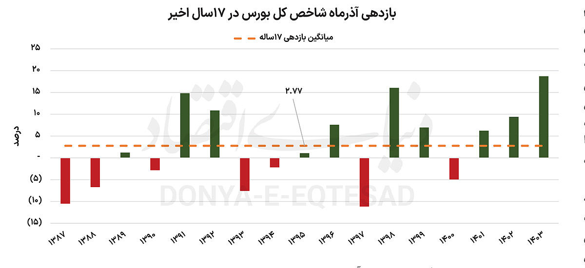 بررسی بازدهی آذرماه در ۱۷ سال گذشته نشان میدهد که بازار در این ماه میانگین بازدهی حدود ۳ درصد را تجربه کرده است، اما این میانگین همواره، بسیاری از فراز و فرودهای شدید این دوره را پنهان میکند. از بازدهیهای منفی سنگین تا جهشهای دو رقمی مثبت، همه در این ۱۷سال به چشم میخورد؛ واقعیتی که نشان میدهد آذرماه همانقدر که میتواند فرصتساز باشد، میتواند دورهای پرریسک نیز تلقی شود.