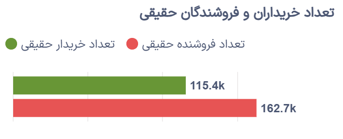 در مجموع، ۱۱۵.۴ هزار خریدار حقیقی بخشی از پورتفوی خود را افزایش دادند، در حالی که ۱۶۲.۷ هزار فروشنده حقیقی در سمت عرضه فعال بودند؛ نشاندهنده آنکه فشار فروش همچنان سنگینتر از تقاضا باقی مانده است.