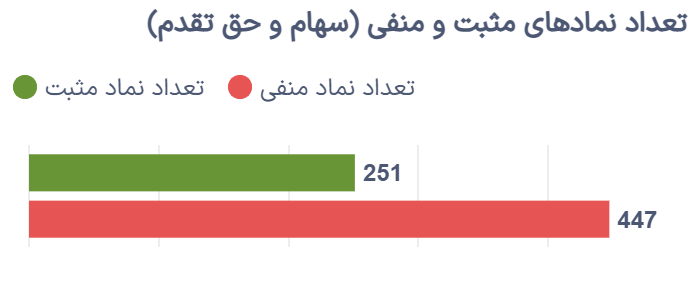 امروز 251 سهم و حق تقدم مثبت بودند و 447 سهم و حق تقدم بهصورت منفی به کار خود پایان دادند.