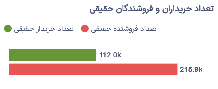 با وجود روند مثبت، رفتار سرمایهگذاران حقیقی همچنان ترکیبی بود. حدود ۱۱۲ هزار خریدار حقیقی امروز پرتفوی خود را سنگینتر کردند، اما ۲۱۵.۹ هزار حقیقی در سمت فروش قرار داشتند؛ موضوعی که نشان میدهد بخش بزرگی از رشد امروز با اتکا به تقاضای حقوقیها شکل گرفته است.
