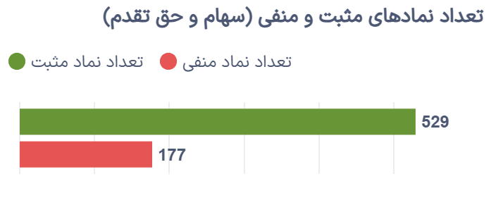 در پایان معاملات ۵۲۹ نماد مثبت و تنها ۱۷۷ نماد منفی بودند که این نسبت یکی از سبزترین روزهای معاملاتی هفته را رقم زد.