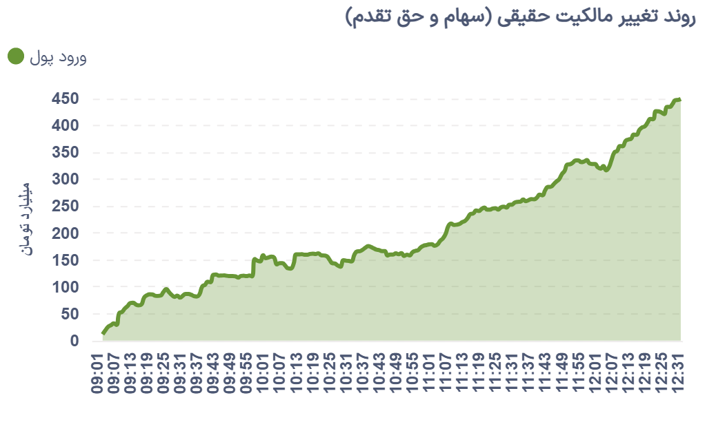در بخش مالکیت حقیقیها، بازار از آغاز تا پایان معاملات شاهد ورود نقدینگی حقیقی بود؛ موضوعی که پس از چند روز نوسان رفت و برگشتی در رفتار سرمایهگذاران، نشانهای مثبت برای بازار تلقی میشود.