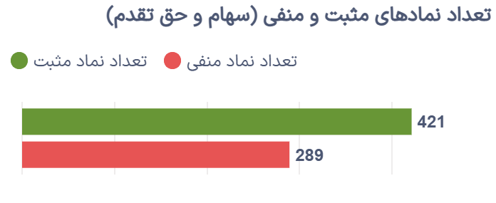 در پایان روز، ۴۲۱ نماد در محدوده مثبت و ۲۸۹ نماد در محدوده منفی به کار خود پایان دادند؛ موضوعی که نشان میدهد گرایش عمومی بازار به سمت خریدهای جدید بوده است.