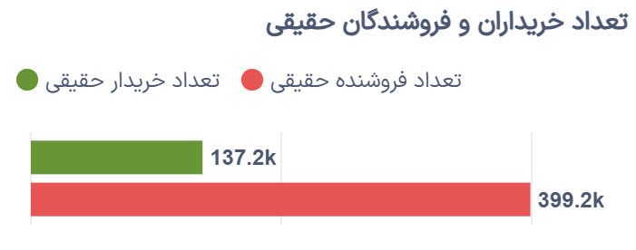 با این حال، از منظر رفتاری، همچنان تعداد فروشندگان حقیقی بیشتر از خریداران بود؛ بهطوریکه حدود ۱۳۷.۲ هزار خریدار حقیقی در برابر ۳۹۹.۲ هزار فروشنده حقیقی قرار گرفتند.