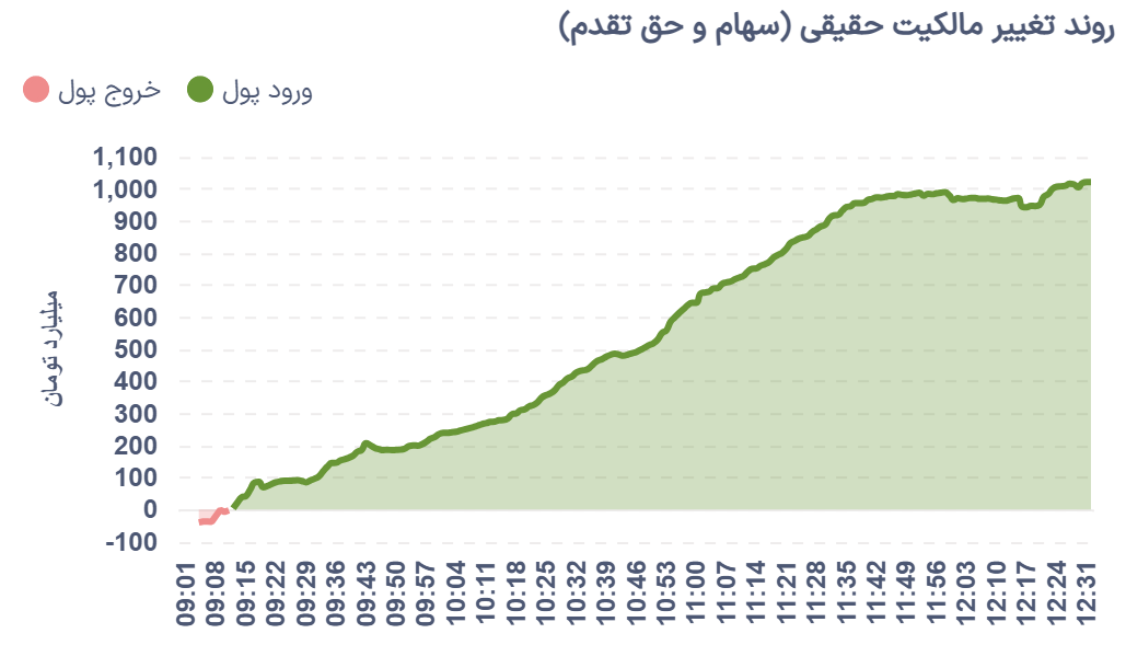 بررسی جریان معاملات نشان میدهد تغییر مالکیت سهامداران حقیقی در ابتدای معاملات با فشار فروش آغاز شد، اما این روند منفی چندان پایدار نماند و با افزایش تقاضا، بازار به مسیر مثبت بازگشت؛ مسیری که تا پایان معاملات روز ادامه یافت.