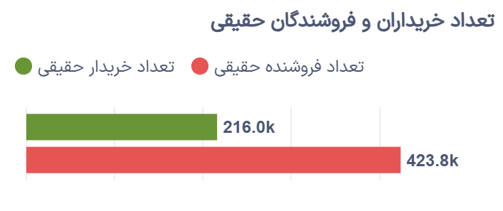 در بخش مشارکت سرمایهگذاران حقیقی نیز، حدود ۲۱۶ هزار خریدار حقیقی اقدام به افزایش وزن پرتفوی خود کردند، در حالی که ۴۳۲.۸ هزار سرمایهگذار حقیقی در سمت فروش فعال بودند؛ آماری که نشاندهنده افزایش احتیاط و تمایل به خروج یا کاهش ریسک در میان فعالان حقیقی بازار است.