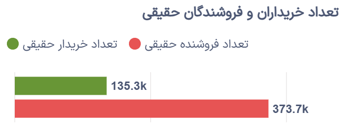 در بخش رفتار سرمایهگذاران حقیقی، حدود ۱۳۵.۳ هزار خریدار حقیقی اقدام به افزایش وزن پرتفوی خود کردند، در حالی که ۳۷۳.۷ هزار سرمایهگذار حقیقی در سمت فروش قرار داشتند. این اختلاف عددی نشان میدهد که با وجود رشد پرشتاب بازار، بخشی از سرمایهگذاران ترجیح دادهاند از فرصت رشد قیمتها برای شناسایی سود استفاده کنند.
