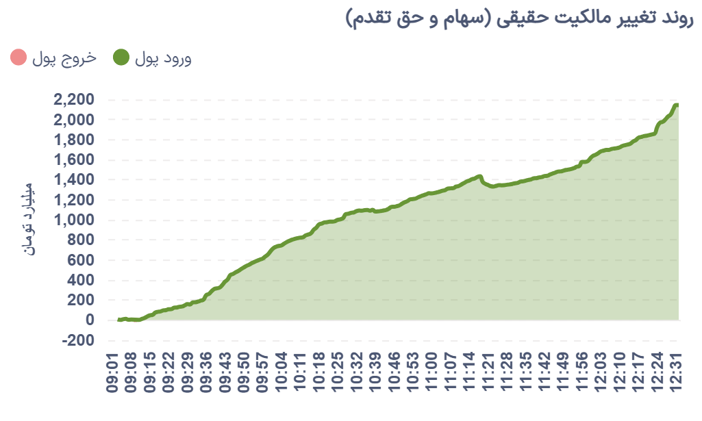 بررسی تغییرات مالکیت سهام و حق تقدم نشان میدهد که بازار از ابتدای معاملات با روندی مثبت همراه بود و این جریان مثبت تا پایان روز ادامه یافت.