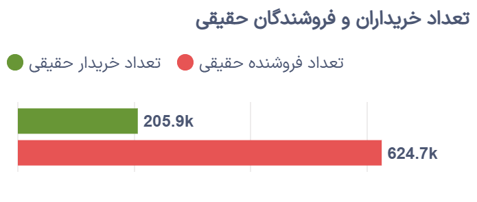 در بخش رفتار سرمایهگذاران حقیقی، حدود ۲۰۵.۹ هزار خریدار حقیقی اقدام به افزایش وزن پرتفوی سهام خود کردند، در حالی که ۶۲۴.۷ هزار سرمایهگذار حقیقی در سمت فروش قرار داشتند. این اختلاف نشان میدهد که همزمان با رشد شاخصها، بخشی از سرمایهگذاران همچنان در حال شناسایی سود هستند.
