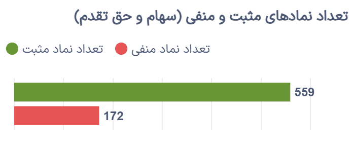 در پایان روز، ۵۵۹ سهم و حق تقدم در محدوده مثبت و ۱۷۲ سهم و حق تقدم در محدوده منفی معاملات خود را به پایان رساندند که حاکی از برتری محسوس نمادهای مثبت در بازار است.