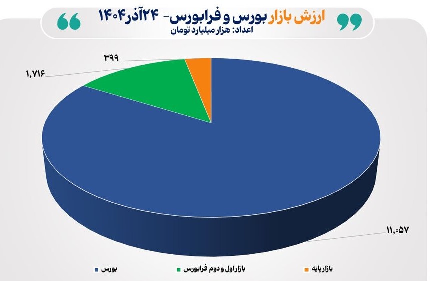 همچنین ارزش بازار سهام بورس تهران معادل ۱۱ هزار و ۷۸۳ هزار میلیارد تومان و ارزش بازار فرابورس به همراه بازار پایه معادل ۲ هزار و ۲۳۴ هزار میلیارد تومان بود.