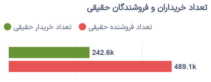 از منظر رفتار معاملهگران حقیقی، حدود ۲۴۲.۶ هزار خریدار حقیقی اقدام به افزایش وزن پرتفوی سهامی خود کردند، در حالی که ۴۸۹.۱ هزار سرمایهگذار حقیقی در موقعیت فروش قرار داشتند. این اختلاف میتواند نشانهای از ادامه شناسایی سود توسط بخشی از فعالان بازار همزمان با رشد متوالی شاخصها باشد.