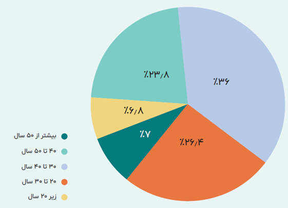 بررسی دادههای مربوط به سرمایهگذاران بازار رمزارزها بر اساس گروههای سنی نشان میدهد که افراد از طیفهای مختلف سنی در این بازار حضور داشته و تجربه سرمایهگذاری در این حوزه را داشتهاند. با این حال، بیش از ۶۲ درصد از فعالان بازار را افراد بین ۲۰ تا ۴۰ سال تشکیل میدهند. در میان این افراد، گروه سنی ۳۰ تا ۴۰ سال با سهم ۳۶ درصدی بیشترین نقش را در میان سرمایهگذاران فعال ایفا کرده و بخش عمده معاملات و سرمایهگذاریها توسط این گروه انجام میشود. این موضوع نشان میدهد که در حال حاضر، تجربه و توان مالی این گروه سنی نقش کلیدی در شکلدهی به روندها و رفتارهای بازار رمزارزها دارد. از سوی دیگر، میزان فعالیت افراد بین ۴۰ تا ۵۰ سال حدود ۲۴ درصد برآورد شده است که نشان میدهد این گروه نیز سهم قابلتوجهی در بازار دارد هرچند کمتر از گروه سنی ۳۰ تا ۴۰ سال است.