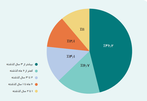 نکته قابلتوجه دیگر در تحلیل بازار رمزارزها، زمان ورود سرمایهگذاران به این حوزه است. بر اساس دادههای ارائهشده بیشترین سهم از فعالان بازار را افرادی تشکیل میدهند که بیش از سه سال از آغاز فعالیت آنها در این حوزه میگذرد. این گروه را میتوان به عنوان سرمایهگذاران باتجربه و پایههای اصلی بازار در نظر گرفت چراکه نقش مهمی در ثبات و جهتدهی به روندها و رفتارهای بازار ایفا میکنند. در مقابل، حدود ۲۳ درصد از فعالان بازار در یک سال اخیر وارد این حوزه شدهاند.
