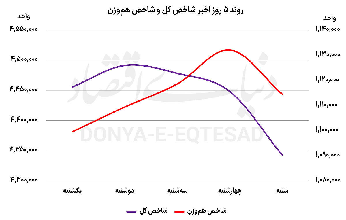 هفته برای تمامی نماگرهای بورس و فرابورس با سرخی آغاز شد. شاخص کل بورس با ریزش بیش از ۱۰۵ هزار واحد، درحالیکه هفته گذشته قدمهای لرزان خود را در کانال 4.5میلیون واحد هم گذاشته بود، کانال 4.4میلیونی را از دست داد و با افت 2.37 درصدی در سطح ۴میلیون و ۳۴۲ هزار واحد به کار خود پایان داد. شاخص هموزن که هفته گذشته را با سبزرنگی به پایان رسانده بود، شنبه با تغییر رنگ مواجه شد و در نهایت با افت 1.56 درصدی در محدوده یک میلیون و ۱۱۴ هزار واحد آرام گرفت؛ موضوعی که نشان میدهد فشار فروش تنها محدود به نمادهای بزرگ نبود و کلیت بازار را دربر گرفت.
