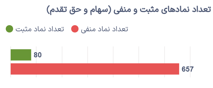 بررسی آمار معاملات نشان میدهد که کفه بازار بهطور محسوسی به نفع فروشندگان سنگینی کرده است. در پایان معاملات امروز، تنها ۸۰ سهم و حق تقدم در محدوده مثبت بسته شدند، در حالی که ۶۵۷ سهم و حق تقدم معاملات خود را با افت قیمت به پایان رساندند.