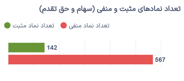 در این روز تنها ۱۴۲ سهم و حق تقدم در محدوده مثبت بسته شدند، در حالی که ۵۶۷ نماد معاملات خود را با افت قیمت به پایان رساندند؛ آماری که برتری عرضه بر تقاضا را بهوضوح نشان میدهد.