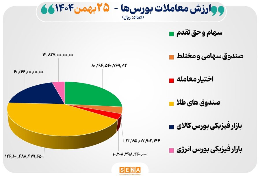 افزون براین ارزش معاملات بازار فیزیکی بورس کالا در روز شنبه ۶۰,۰۴۶ میلیارد ریال و صندوقهای کالایی ۱۳۷,۱۶۵ میلیارد ریال، ارزش معاملات گواهی سپرده ۳۰,۴۱۴ و مشتقه و سایر اوراق بهادار ۳,۲۲۴ میلیارد ریال بود.