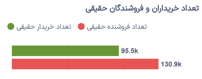 حدود ۹۵.۵ هزار خریدار حقیقی اقدام به افزایش وزن سبد خود کردند، اما در مقابل، بیش از ۱۳۰.۹ هزار سرمایهگذار حقیقی در سمت فروش قرار گرفتند. این برتری فروشندگان حقیقی نشان میدهد که بخشی از سهامداران خرد همچنان در حال کاهش ریسک پرتفوی خود هستند.
