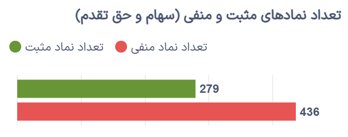 در پایان معاملات امروز، ۲۷۹ سهم و حقتقدم با رشد قیمت به کار خود پایان دادند، در حالی که ۴۳۶ نماد در محدوده منفی بسته شدند. این نسبت، غلبه نسبی عرضه بر تقاضا را نشان میدهد.