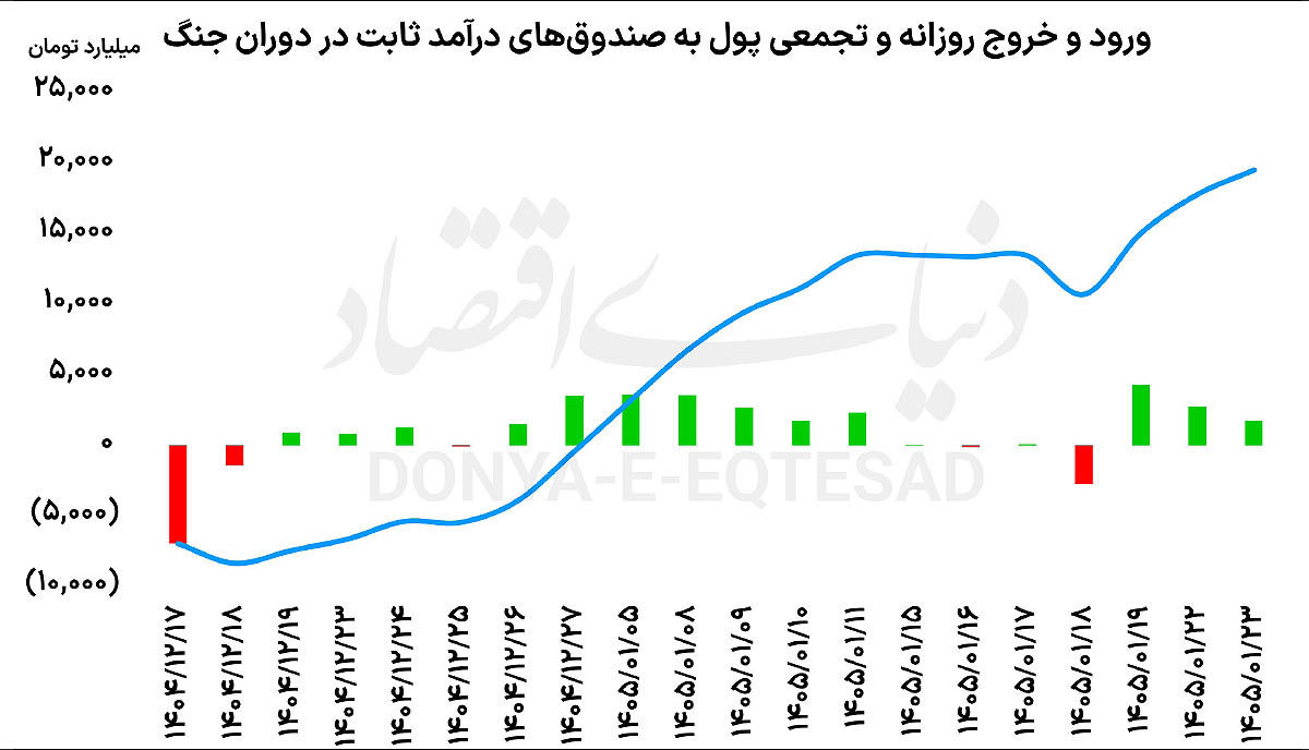 روز گذشته و در معاملات صندوقهای درآمد ثابت، بیش از ۱۶ همت واحد صندوق درآمد ثابت میان خریداران و فروشندگان دست به دست شد که در نتیجه آن، هزار و ۷۳۰میلیارد تومان پول حقیقی وارد گردونه معاملات این صندوقها شد. در سه روز اخیر، قریب به ۹ همت پول حقیقی وارد صندوقهای درآمد ثابت شده است و از ابتدای بازگشایی مجدد این صندوقها در ۱۷اسفند سال گذشته نیز، حدود ۲۰هزارمیلیارد تومان پول حقیقی وارد این صندوقها شده است.