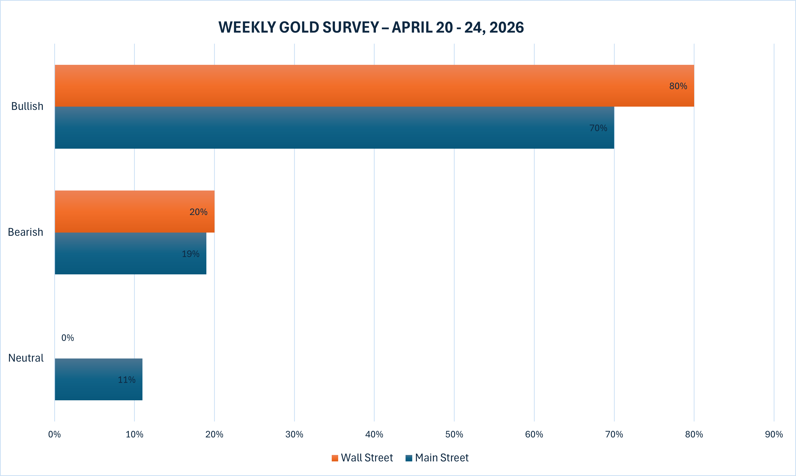 آخرین نظرسنجی کیتکو نیوز نشان می‌دهد که وال استریت و خیابان اصلی پس از چهار هفته متوالی افزایش قیمت طلا و افزایش خوشبینی به اینکه راه‌حلی بلندمدت برای جنگ ایران ممکن است در دسترس باشد، به شدت به سمت خرید طلا تمایل دارند.