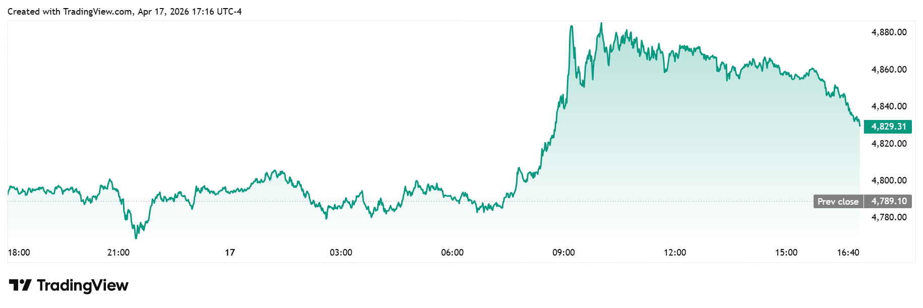 حرکت بزرگ از صبح جمعه آغاز شد، زمانی که شایعاتی درباره تحولات مثبت در خاورمیانه پخش شد. طلا پس از رسیدن به کمترین قیمت روزانه در ۴,۷۸۶ دلار در ساعت ۷ صبح، به سرعت به بالای ۴,۸۹۰ دلار رسید.