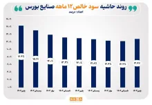 روند حاشیه سود خالص ۱۲ ماه منتهی به پایان هر فصل صنایع بورس