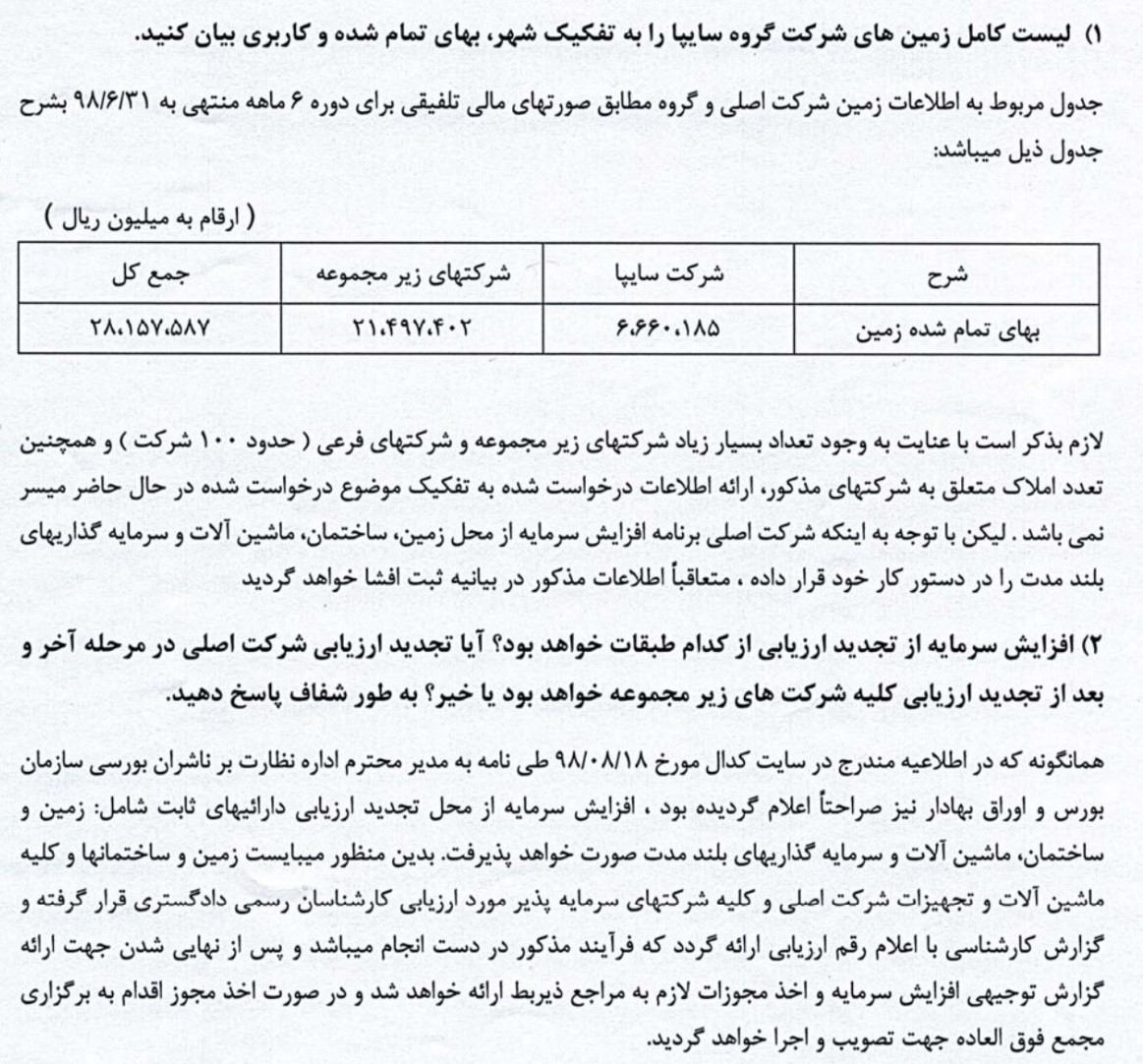 سایپا گفته است که برنامه افزایش سرمایه از محل ساختمان ،زمین، ماشین الات و تجهیزا و سرمایه گذاری بلند مدت است.
